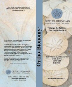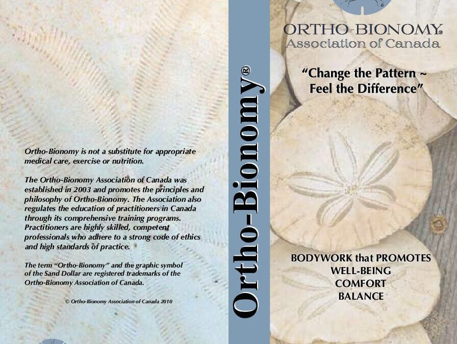The term Ortho-Bionomy® and the graphic symbol of the Sand Dollar are registered trademarks of the Ortho-Bionomy Association of Canada. Only qualified members of the Ortho-Bionomy Association of Canada in good standing have permission to use these trademarks.